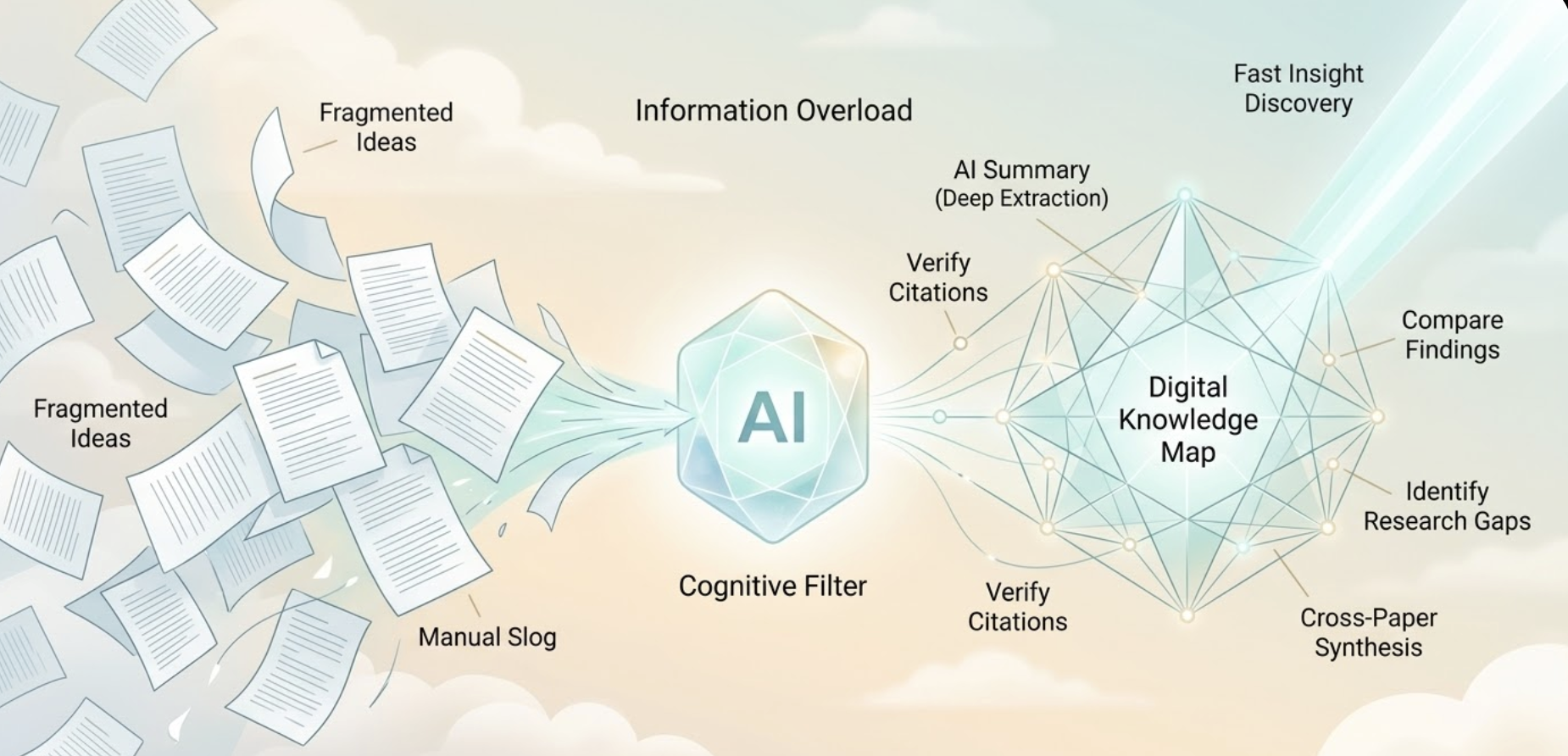 Most literature AI tools are deaf to these questions. They treat every paper as an island, failing to map the archipelago of human knowledge.